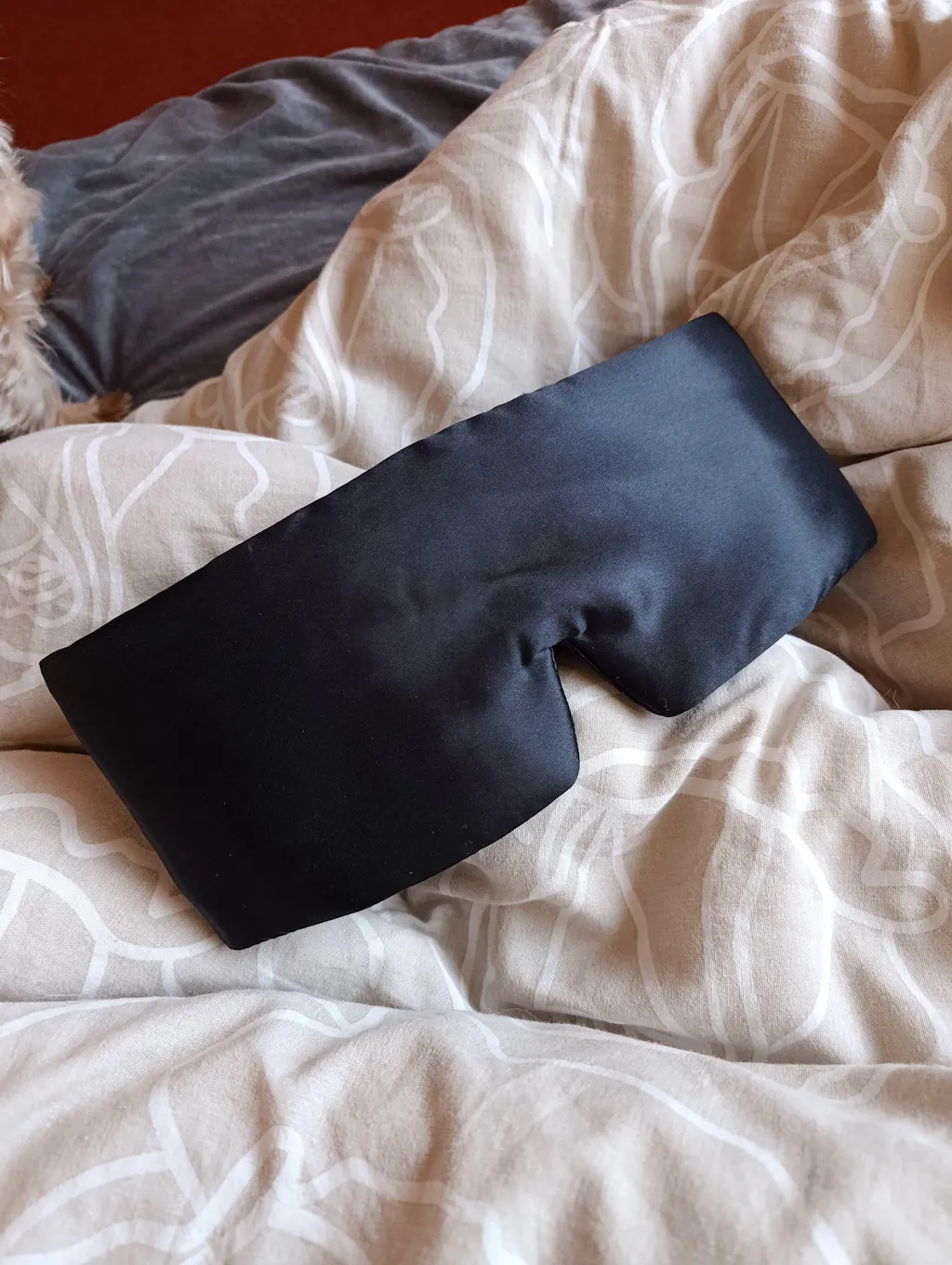 Kritērijs maskas iegādē bija - lai nelaiž cauri gaismu, lai caur deguna zonu nenāk iekšā gaisma. Izvēlējos - melnas krāsas, regulējamo masku.