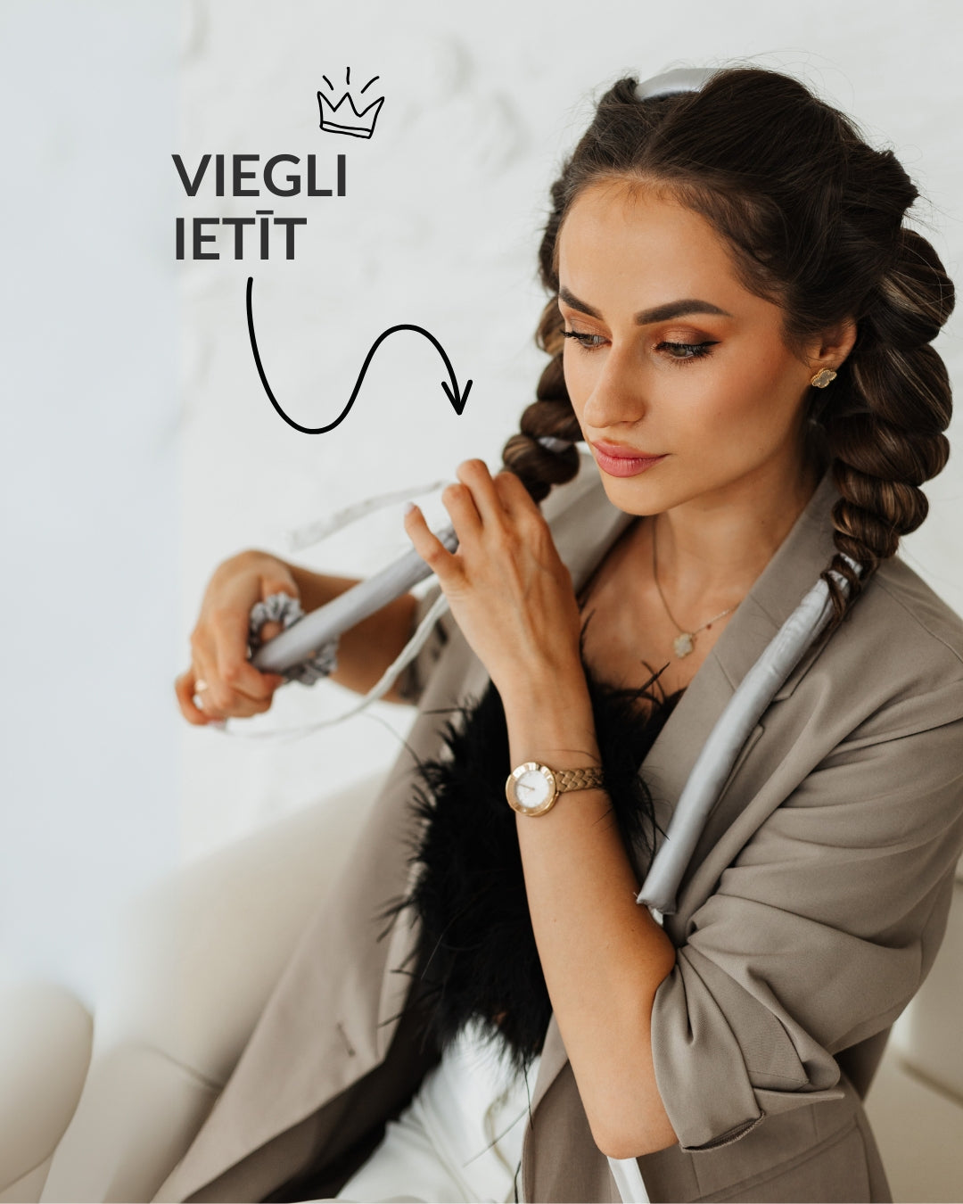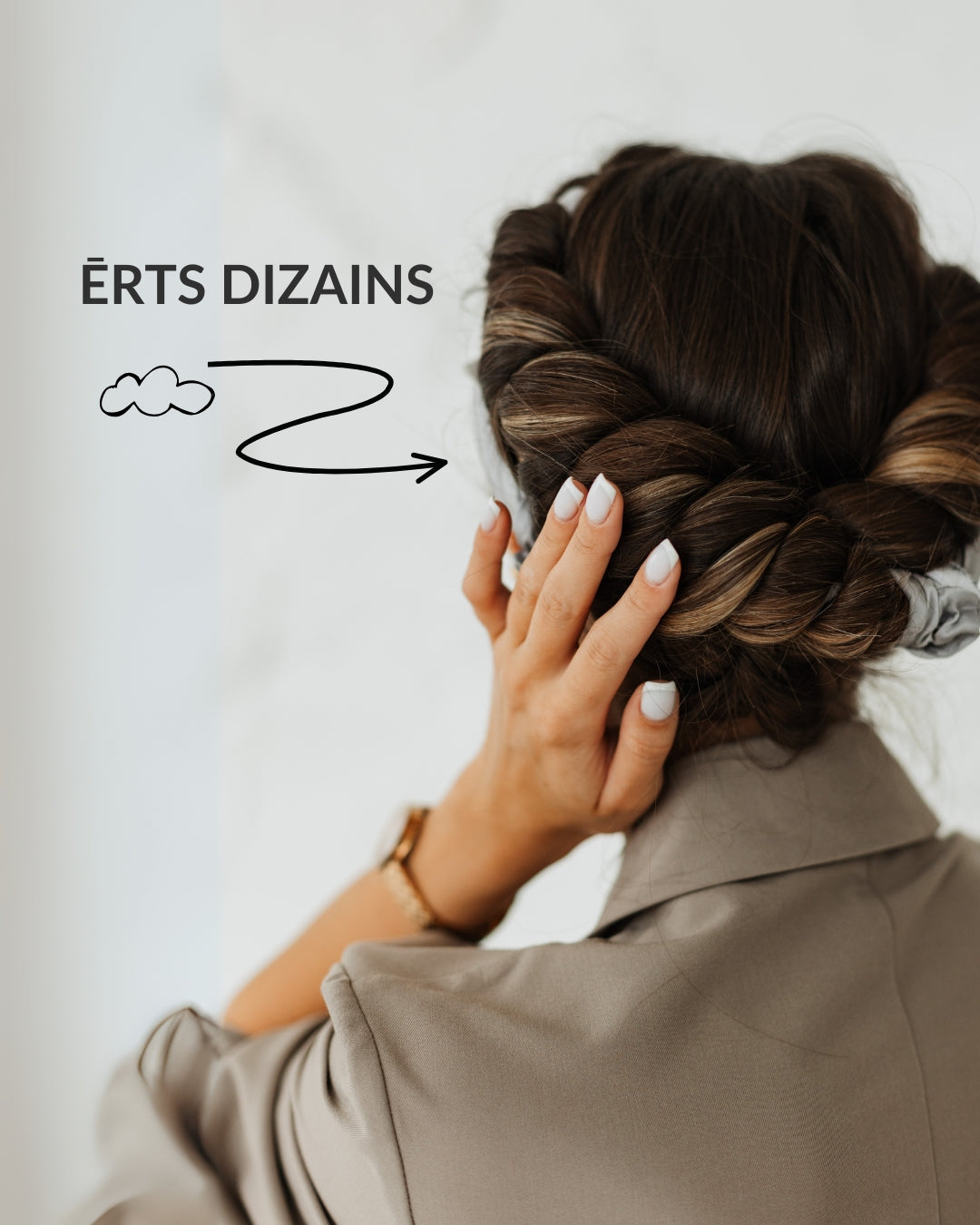 - Unikāls dizains ar zīda lentām matu ruļļa galos ērtai nostiprināšanai ap galvu.