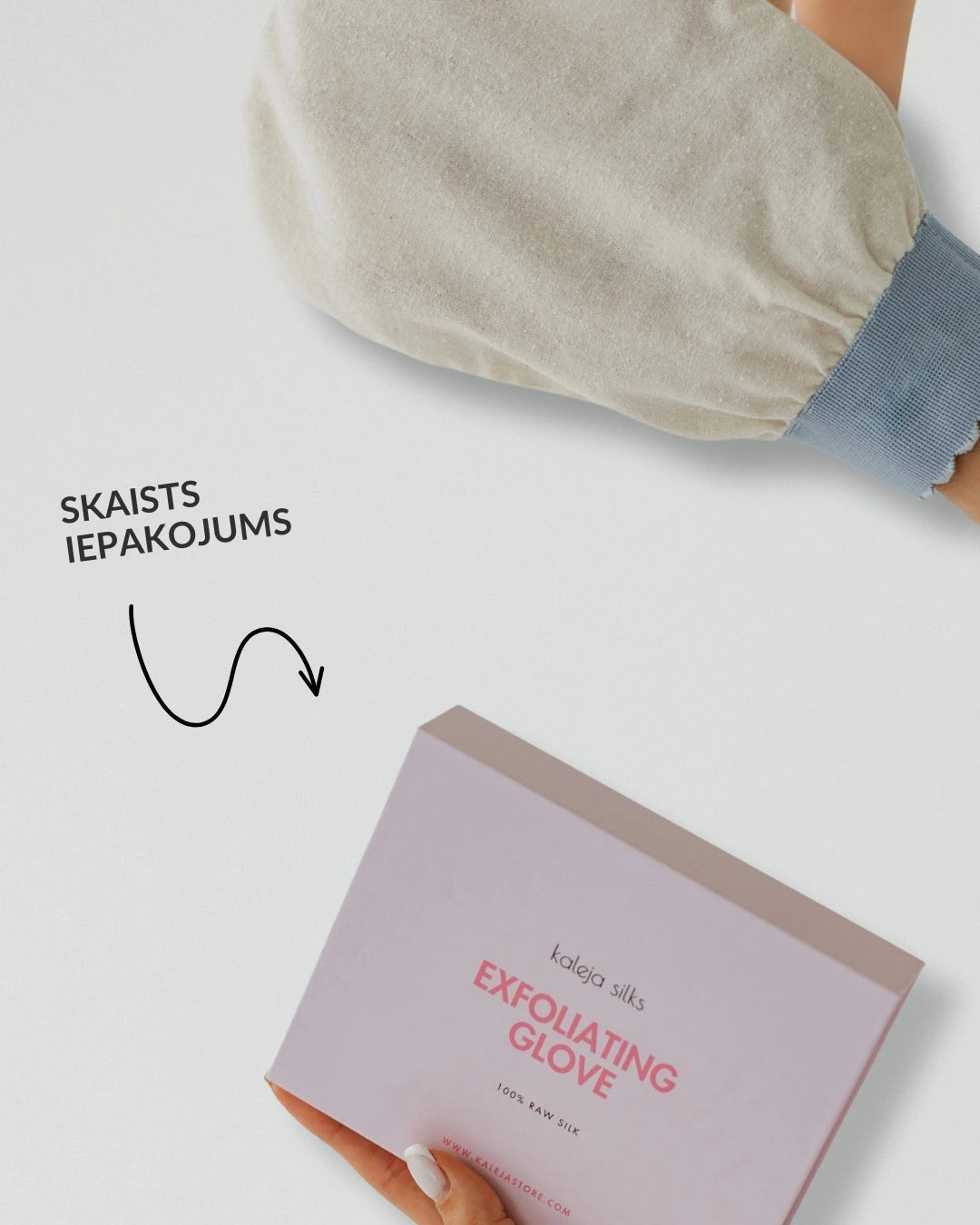 Izmanto Kaleja Silks pīlinga cimdu ar slaukošām kustībām, izmantojot tikai ūdeni.