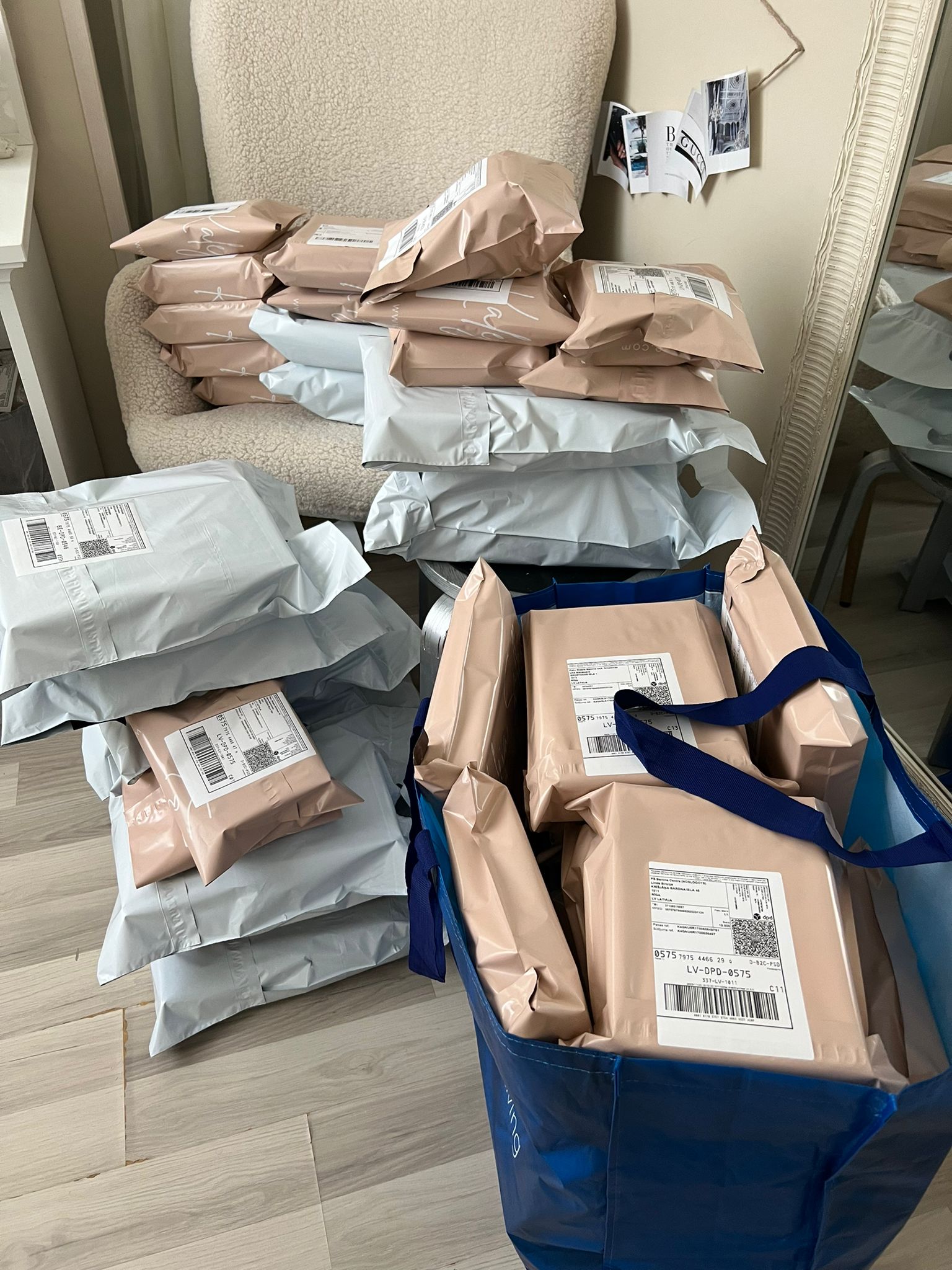 Kaleja Silks range is expanding. Silk eye masks and hair ties start to grow on us and are being sold too. Silk hair curlers have already gained their recognition amongst Latvian customers. Moving to bigger flat.